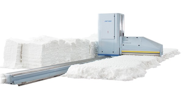 1. JWF1009 series bale plucker machine has the functions of group grabbing and automatic rotation. The grab arm width have 170CM and 230CM two kind of. It can supply one to three blowing production lines at the same time, and the output can reach 1500kg/h.