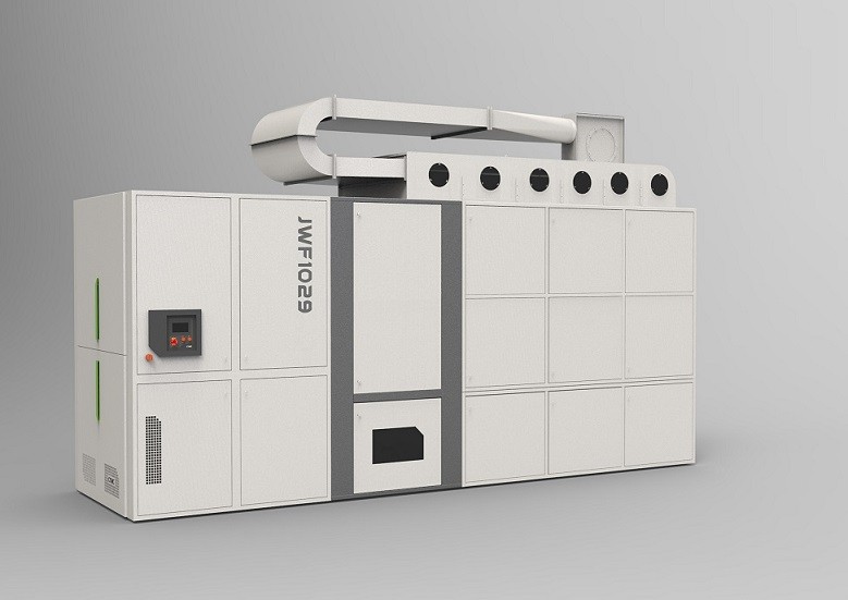 JWF1029 is used for blending cotton ,chemical fiber or blends .After fiber is fed into JWF1029, airflow blows it into every hopper evenly to form a airflow blending .The fiber in every hopper is conveyed in a 90°turn. And the excessive fiber is thrown into blending room to attain fine mixture.